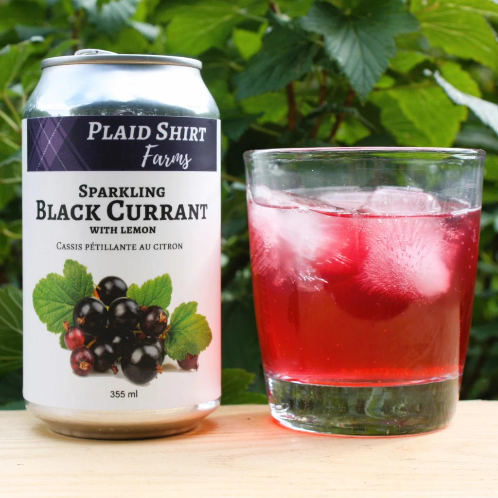 Four cans of Sparkling Haskap, Sparkling Black Currant and Sparkling Red Currant