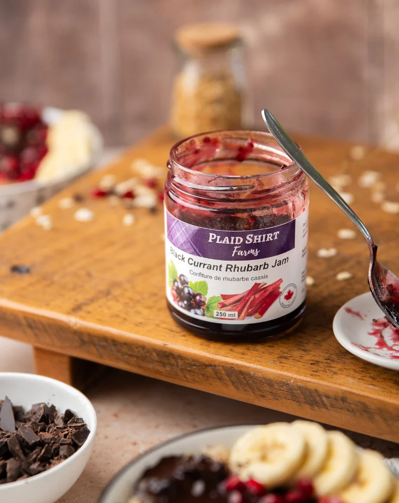 Plaid Shirt Farms' Black Currant Rhubarb Jam is a fantastic blend of traditional flavours. Great on toast, throw it on ice cream or use it as a barbeque glaze.