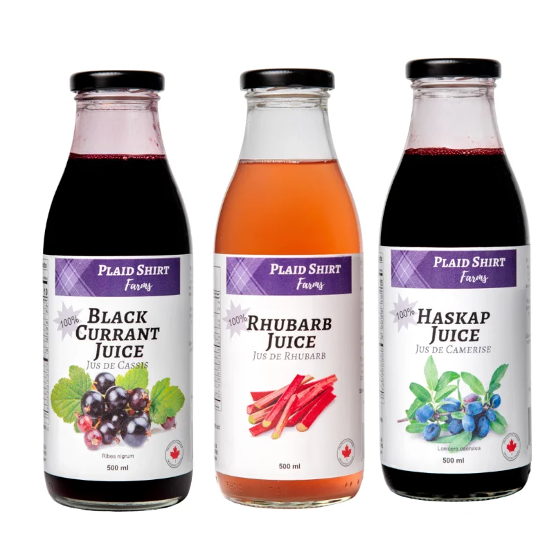 Plaid Shirt Farms’ Pure Juice Three Pack features three of our 100% not-from-concentrate juices, crafted from berries grown and harvested on our Ontario farm. With no water added and no artificial ingredients, this trio lets you experience each fruit in its most vibrant form.